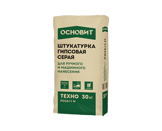 Гипсовая штукатурка ОСНОВИТ ТЕХНО PG26/1 M предназначена для выравнивания стен и потолков в помещениях с нормальной влажностью под оклеивание обоями, окрашивание.