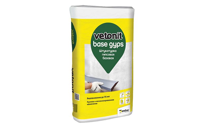 vetonit base gyps - гипсовая паропроницаемая штукатурка для базового выравнивания стен и потолков. Можно использовать для сухих помещений с нормальной влажностью, а также для кухни, коридора, санузла под дальнейшее шпаклевание и финишную отделку. Смесь пластичная и легко замешивается.